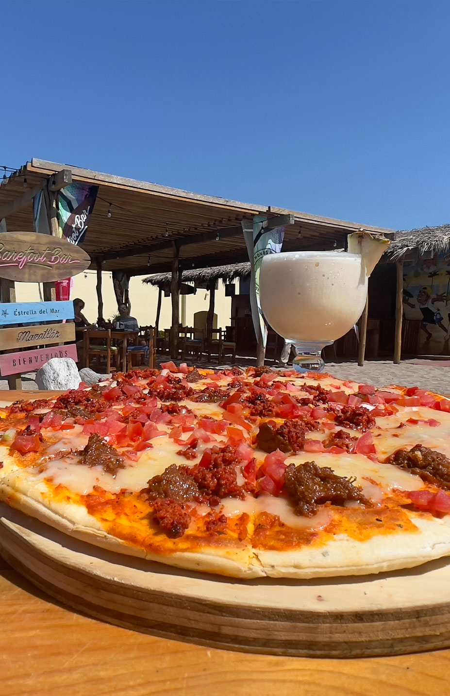 With your feet in the sand and the ocean before you, Barefoot Bar is an enchanting spot to enjoy fresh seafood, wood-fired pizzas, and your favorite drinks — a relaxed dining experience right by the sea.